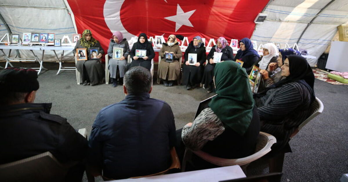 Diyarbakır’da evlatlarının terör örgütü PKK tarafından dağa kaçırıldığını söyleyen ailelerin 3 Eylül 2019’da eski HDP İl Başkanlığı önünde başlattığı oturma…